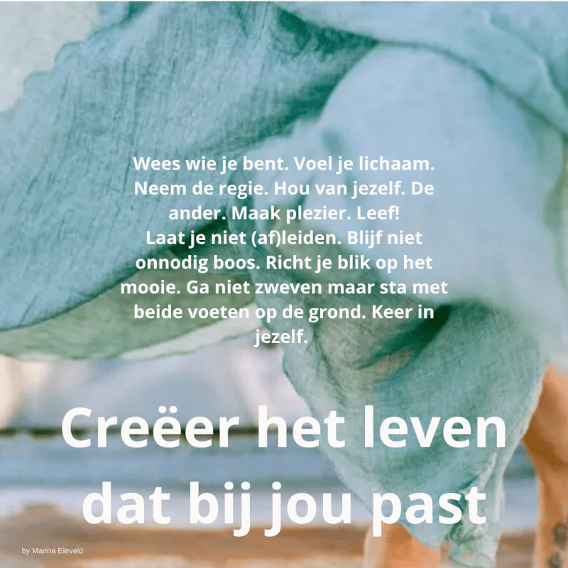 Nogmaals héél fijn dat je voor deze mini-cursus hebt gekozen. Zou je nog een paar korte vragen willen beantwoorden? Deze kun je doorsturen naar informatie@marinaeleveld.nl